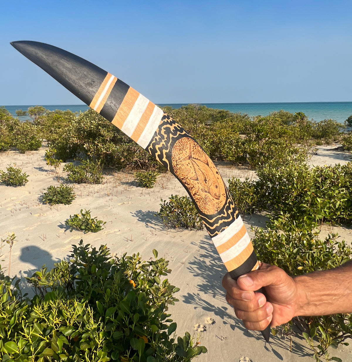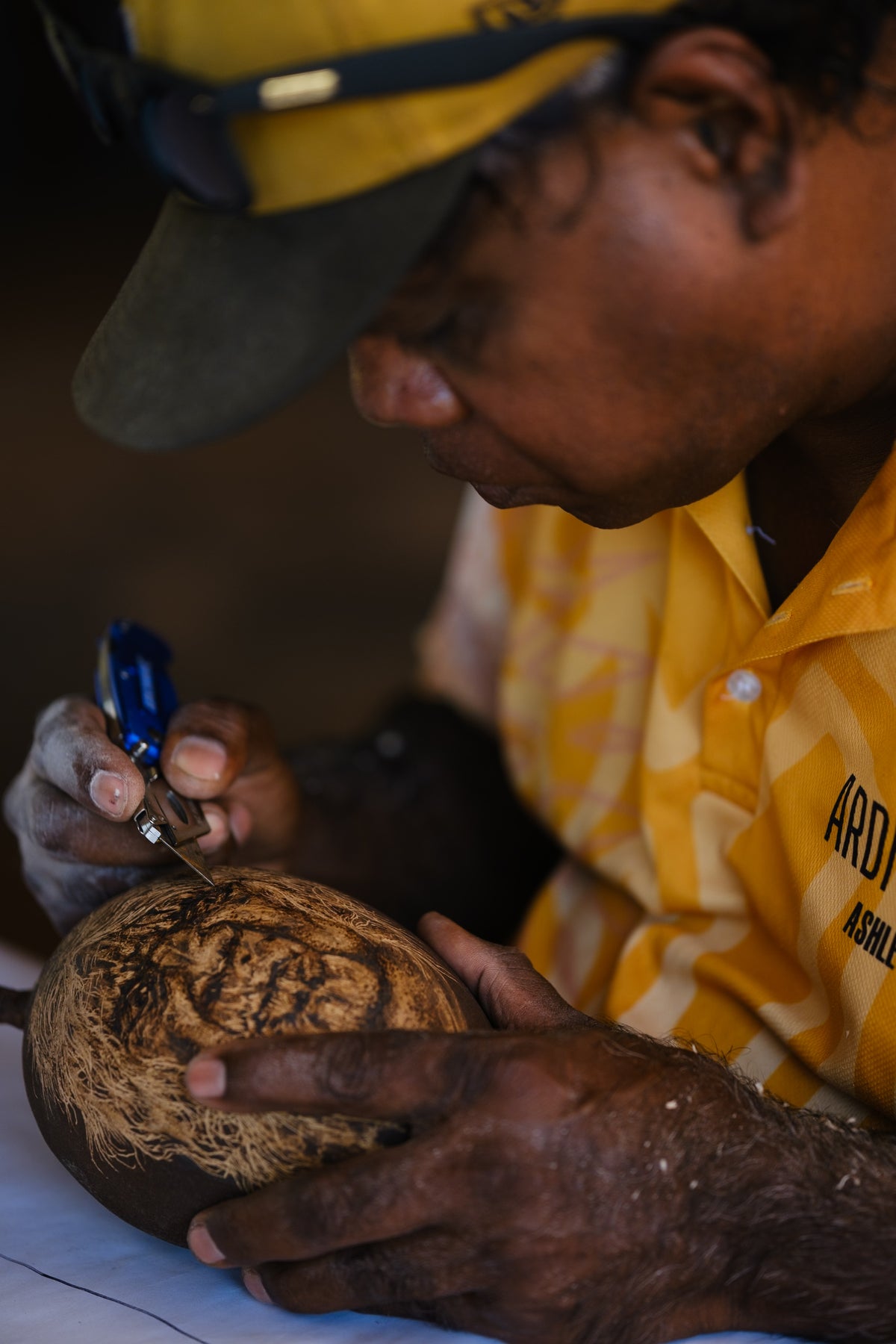We are committed to cultural continuity and to creating meaningful social, cultural, and economic opportunities for our saltwater people. All artwork sales directly support Bardi Jawi artists, our broader community programs and the sustainability of our Hub.